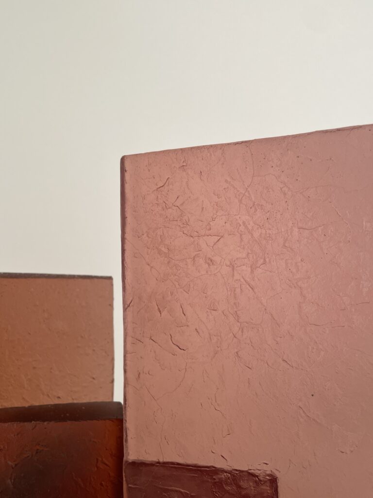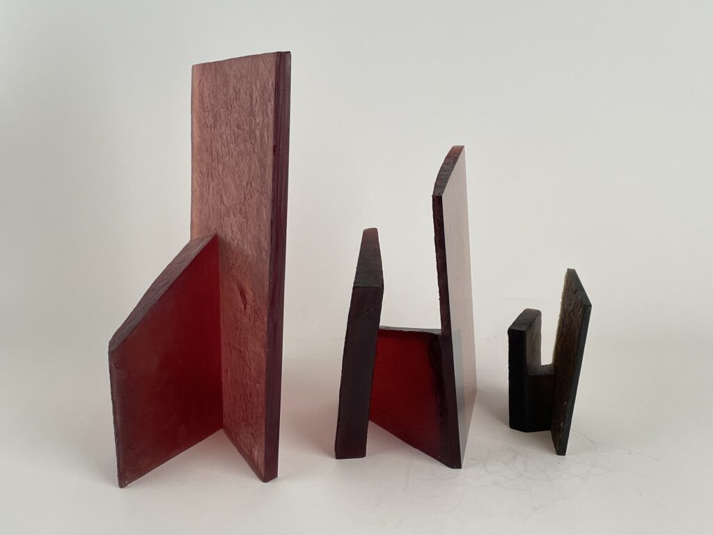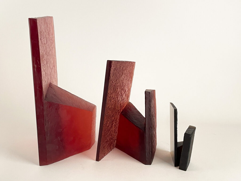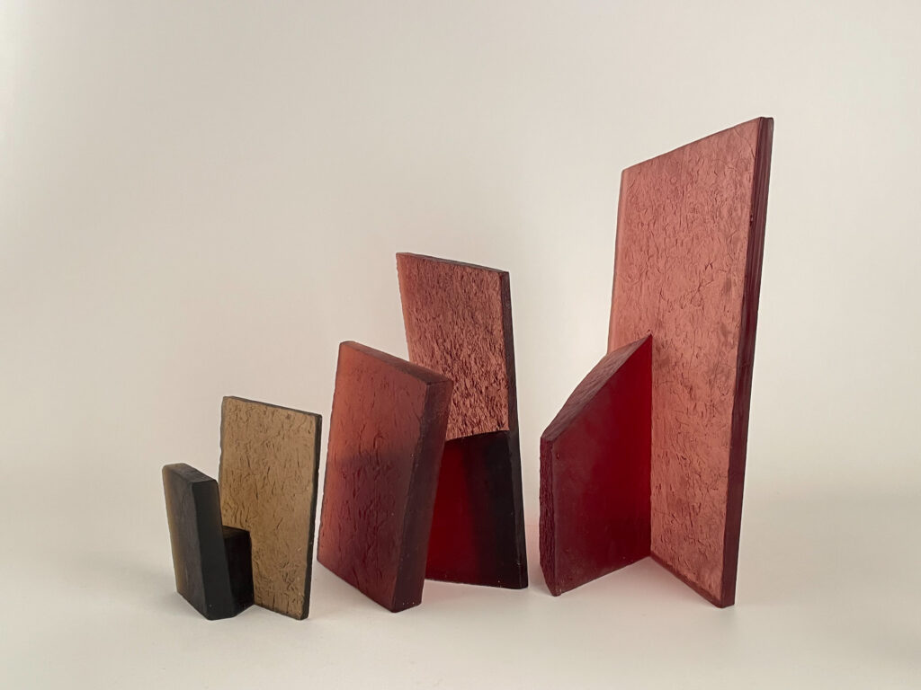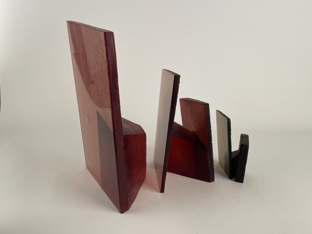 Cast in transparent glass, the overlapping forms allow partial visibility while resisting full access. The material’s clarity emphasizes depth and spatial recession, while its solidity maintains a sense of containment. As the viewer moves around the work, perception shifts continuously, revealing changing alignments and interruptions between interior and exterior spaces.