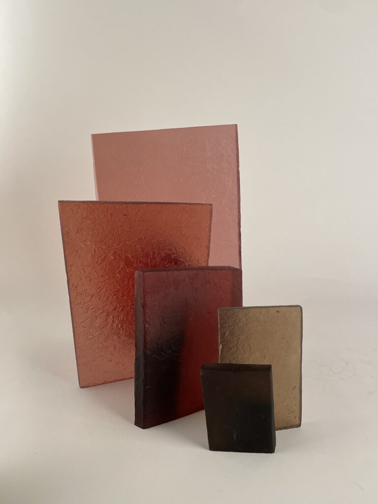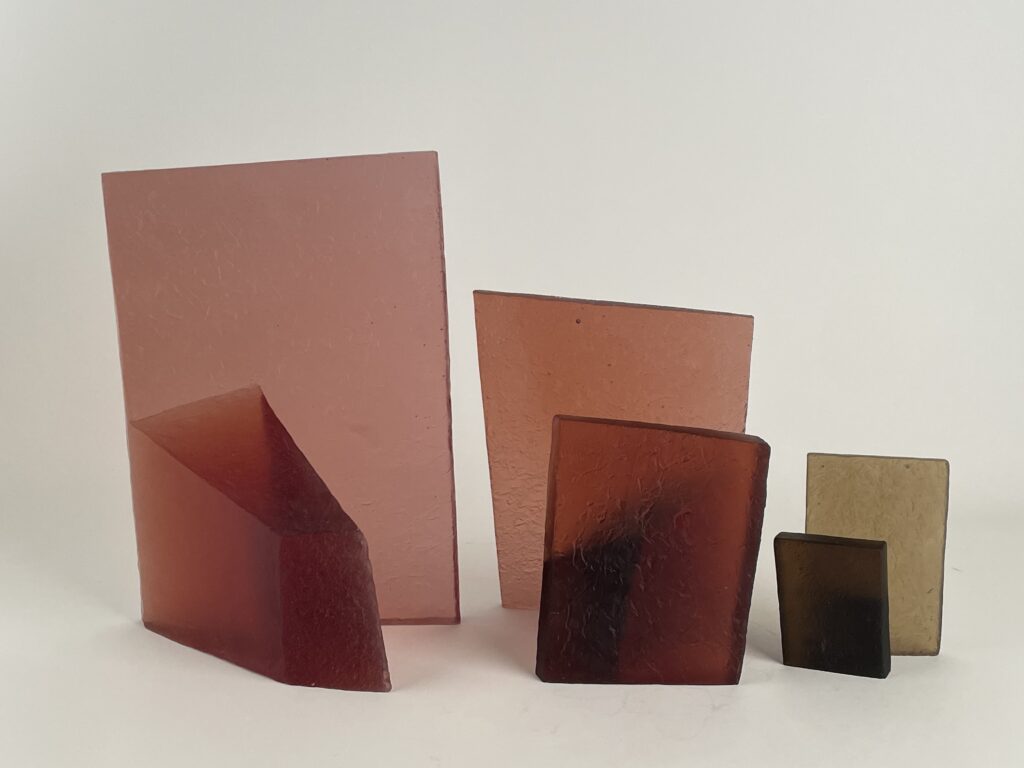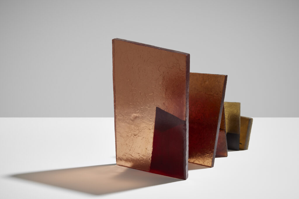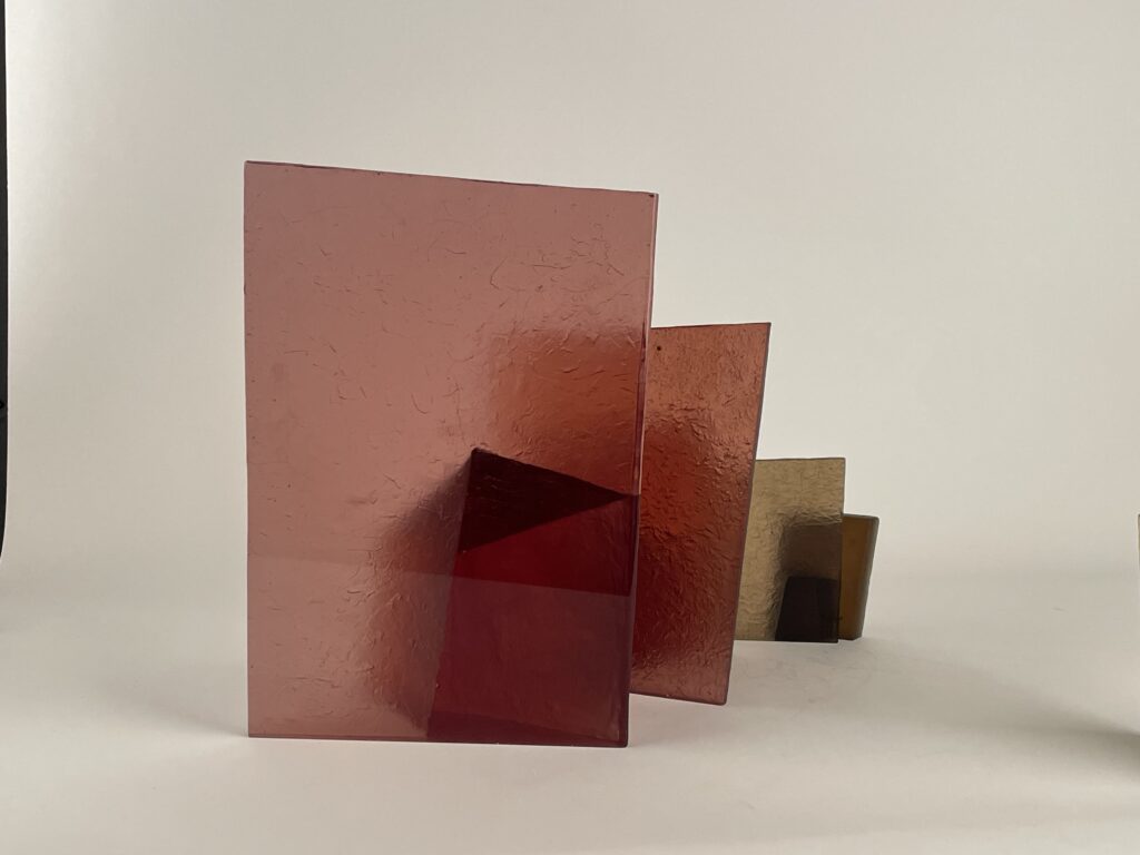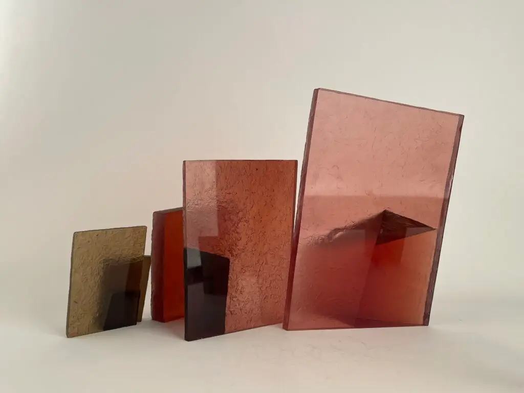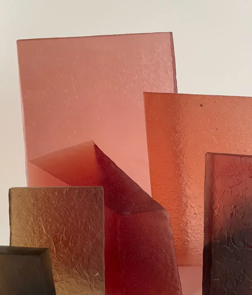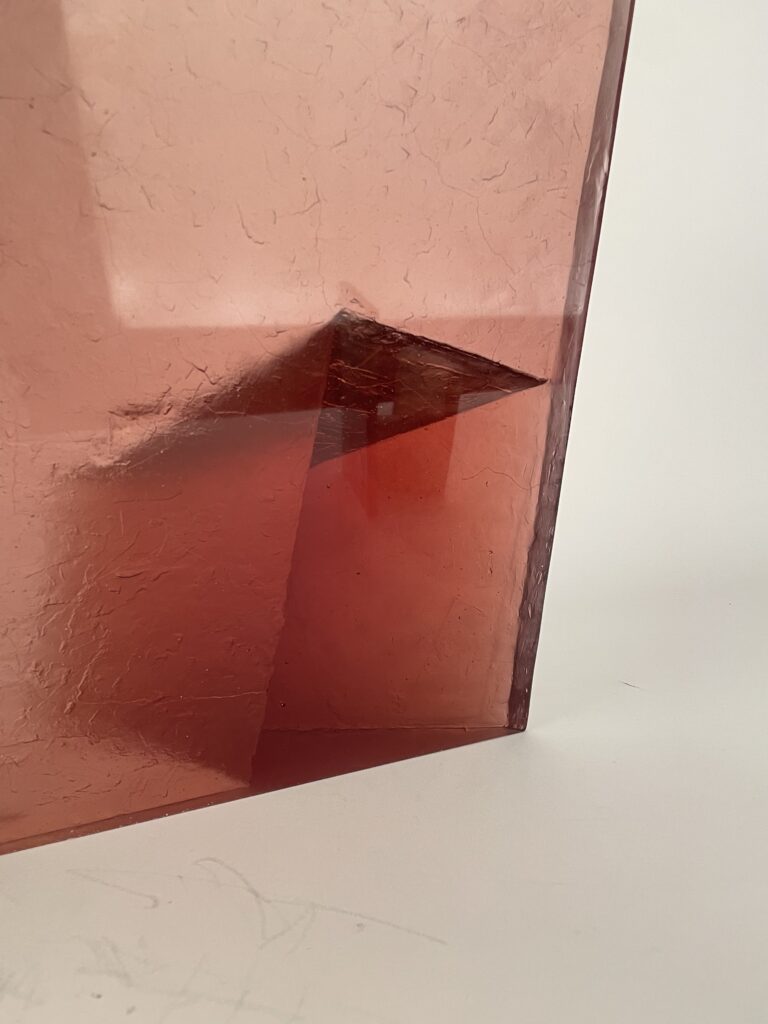 투명한 유리로 제작된 겹겹의 형태는 부분적인 가시성을 허용하는 동시에 완전한 접근을 제한한다. 유리의 투명성은 공간의 깊이와 후퇴를 강조하고, 물질의 견고함은 내부를 감싸는 구조적 긴장을 유지한다. 관람자의 시점이 이동함에 따라 내부와 외부의 관계는 지속적으로 변형되어 인식된다.